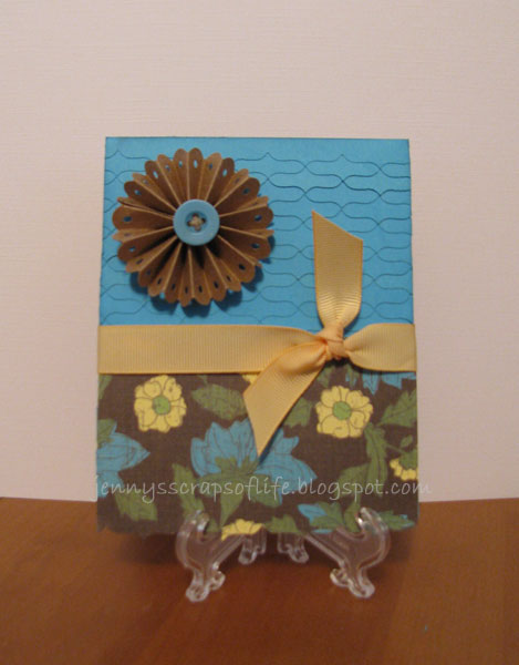 In the mean time, here are some of the things I've been up to lately. I had a scrappy coffee playdate with my friend Angie earlier this week and got a few cards started. I love the butterfly paper. So much fun. And I HAD to try out the Nestabilities that I got for Christmas. I LOVE 'em! They're so much fun to work with! Let's just say that there will be more in my future! ;)